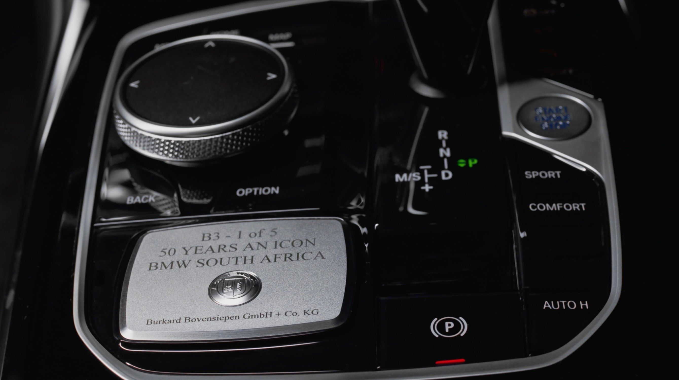 Další úpravy, které se vážou k výročí, se dostaly do interiéru. Na kůží čalouněných sedadlech Merino Black je na opěrkách hlavy předních sedadel vyšito logo 50. výročí BMW Group South Africa, zatímco plaketa 50 Years an Icon, BMW South Africa na středové konzole potvrzuje, že každý kus představuje jeden z edice pouhých pěti vozů.