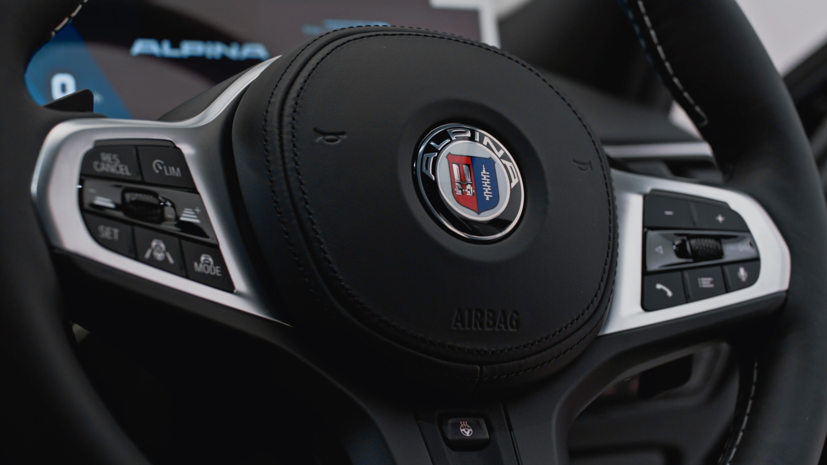 Mezi typické prvky ALPINA patří prahové lišty ALPINA a sportovní kožený volant ALPINA SWITCH-TRONIC (s hliníkovými řadicími páčkami), kůže LAVALINA a ruční zakázkové prošívání v bílé a zelené barvě ALPINA.