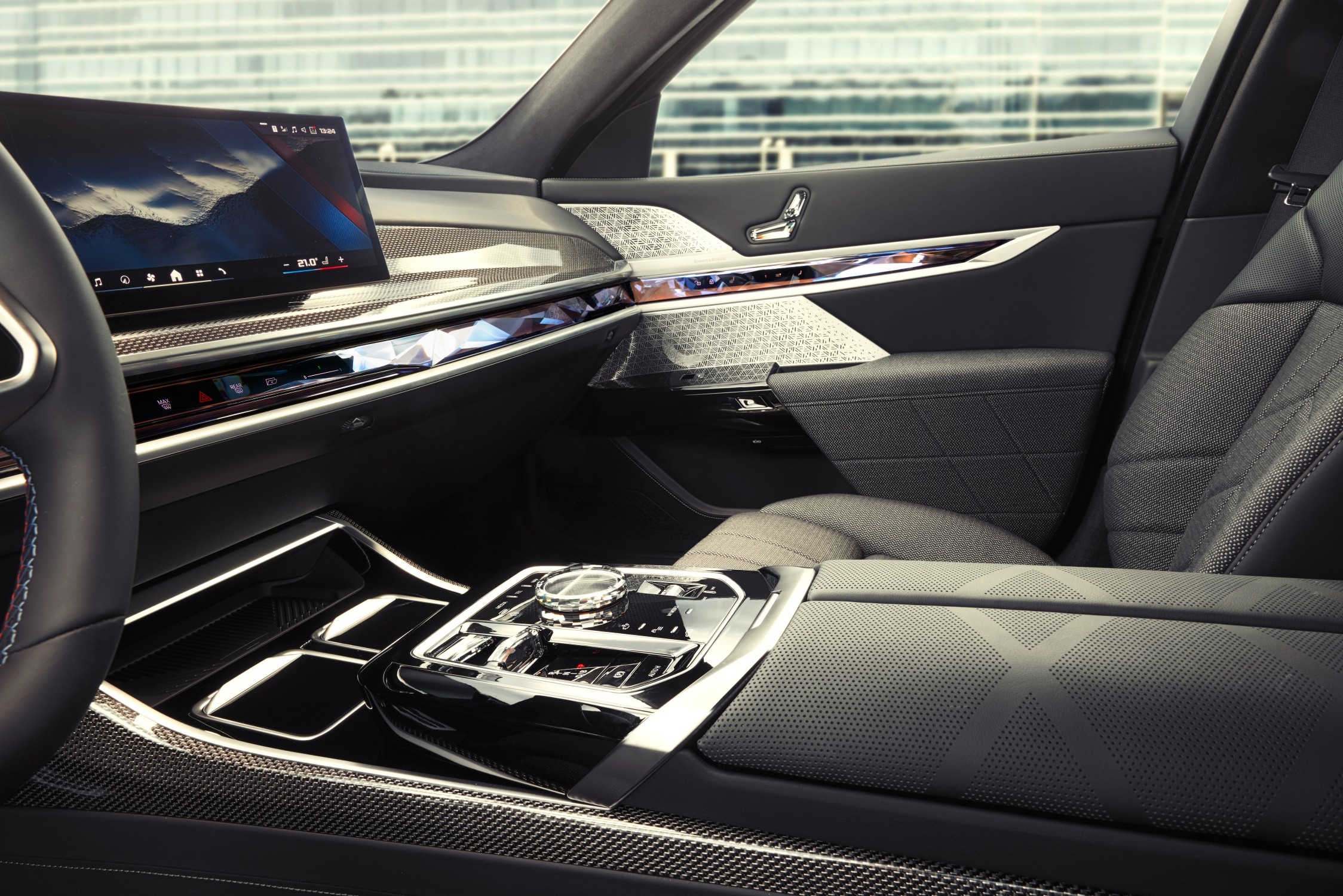 Nové BMW i7 M70 xDrive je jedním z prvních modelů značky, který je vybaven nejnovější generací BMW iDrive s funkcí QuickSelect a BMW Operačním systémem 8.5. Přepracovaná struktura menu vycházející ze světa mobilních elektronických zařízení spolu s přepracovanou hlavní obrazovkou a rychlým přístupem ke QuickSelect mění koncept obsluhy. Systém BMW iDrive s funkcí QuickSelect je kombinován s BMW Prohnutým displejem a digitálním asistentem BMW Intelligent Personal Assistant.