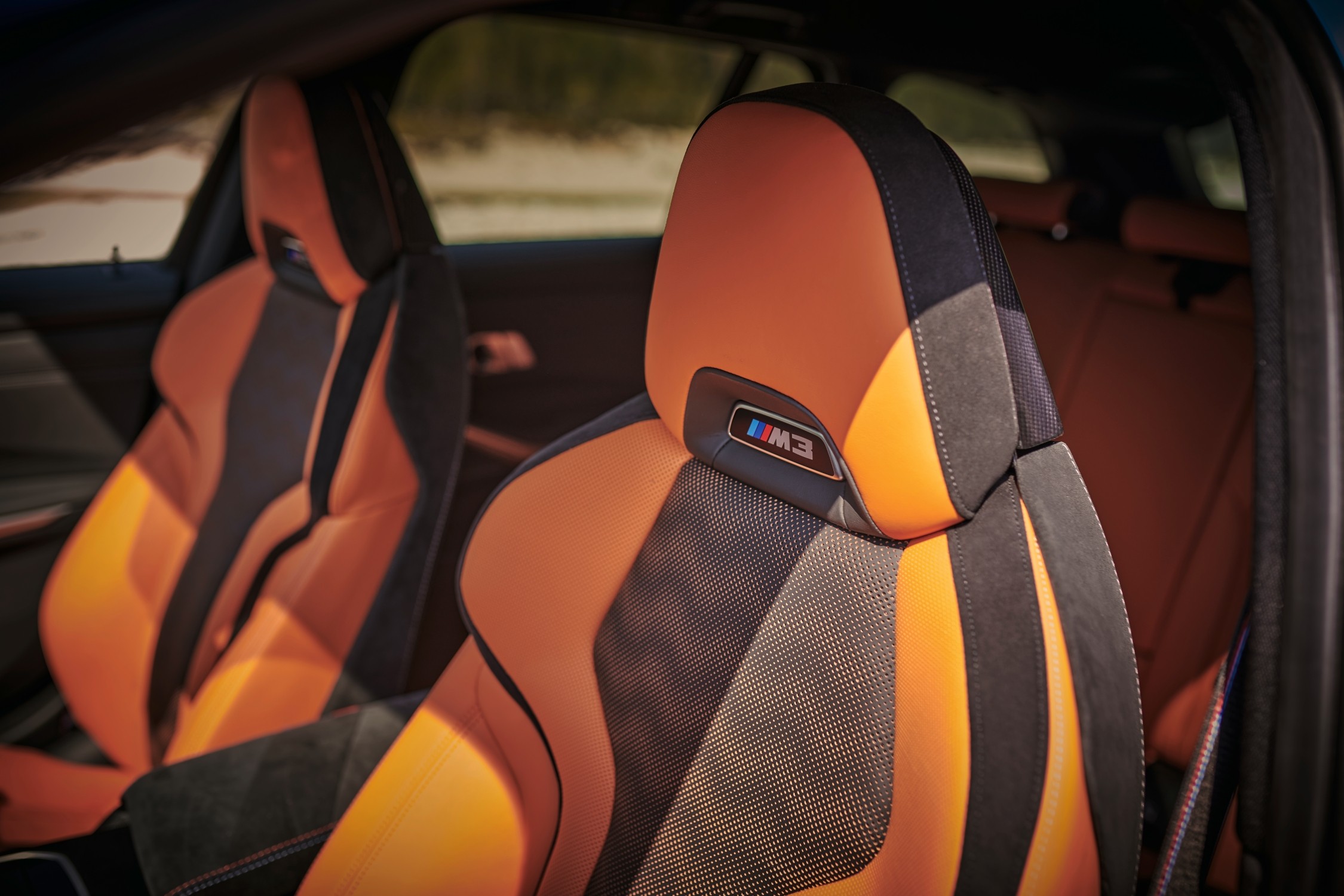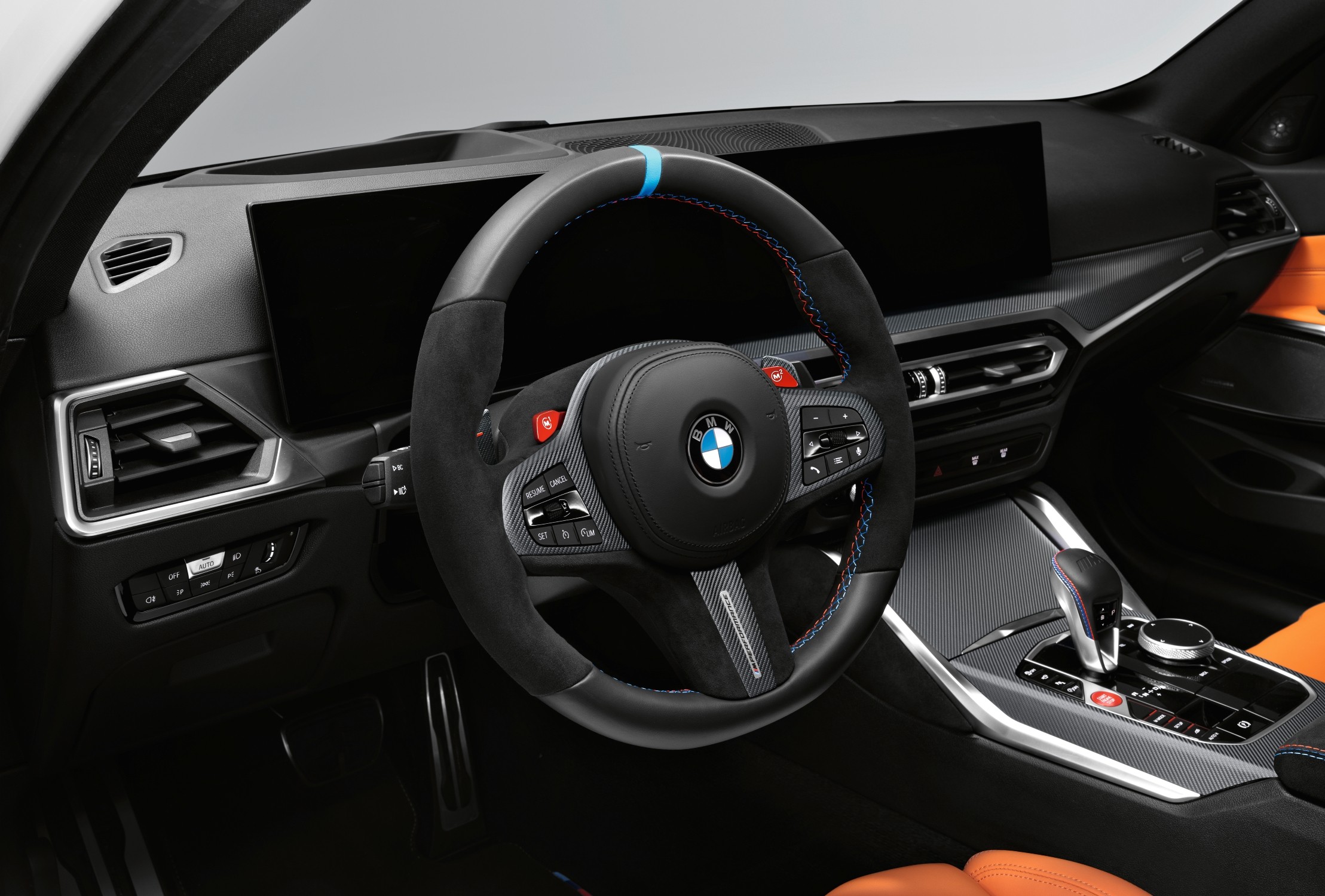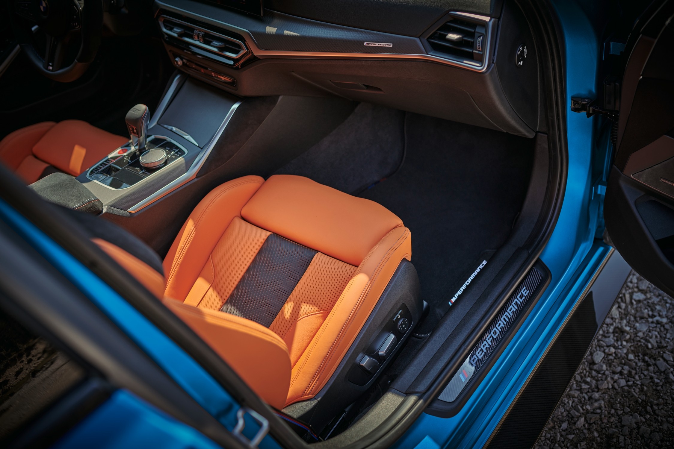 Propracované prvky z uhlíkových vláken a Alcantary vnášejí do interiéru DNA světa motorsportu a BMW M. M Performance obložení interiéru z matného karbonu s otevřenými póry je doplněno dvěma velkými kolenními opěrkami čalouněnými Alcantarou, které při obzvláště ostrých průjezdech zatáčkami zlepšují boční držení těla řidiče. M Performance kryty zadních částí předních sedadel dodávají interiéru další dávku aury špičkového závodního vozu. Karbonové lemy opěrek hlavy jsou zásluhou polyuretanového laku a leštění do vysokého lesku mimořádně přitažlivé, zbývající část zadního krytu sedadel je čalouněna nádhernou Alcantarou s integrovaným hliníkovým štítkem M Performance. Exkluzivní atmosféru kokpitu závodního vozu dotváří M Performance Alcantarová středová loketní opěrka, které dodává další atraktivitu dekorativní prošívání v barvách BMW M GmbH a nápis M Performance.