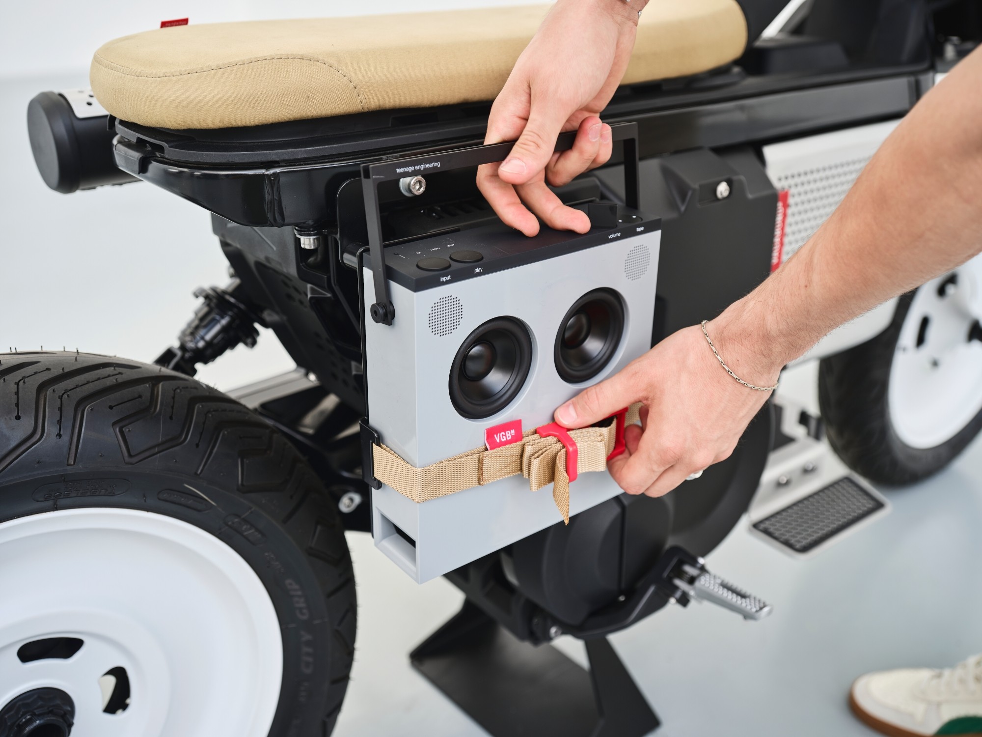 Motocykl postavený na zakázku Made in Austria zaujme nejen svým jedinečným futuristickým designem, ale také různými funkčními „retro“ prvky, které byly navrženy moderním a svěžím způsobem se zaměřením na mladou cílovou skupinu. Například integrace audiosystému „OB-4 Magic Radio“ od společnosti Teenage Engineering podtrhuje mladou a kreativní filozofii tohoto custom biku. „Elektrický výfuk“ slouží jako praktický stylový prvek a současně jako vizuální zvýraznění, přitom nabízí prostor pro deštník. Designové prvky, jako je prostor s páskou na držení skateboardu, odrážejí sportovní a městský styl tohoto eParkoureru.