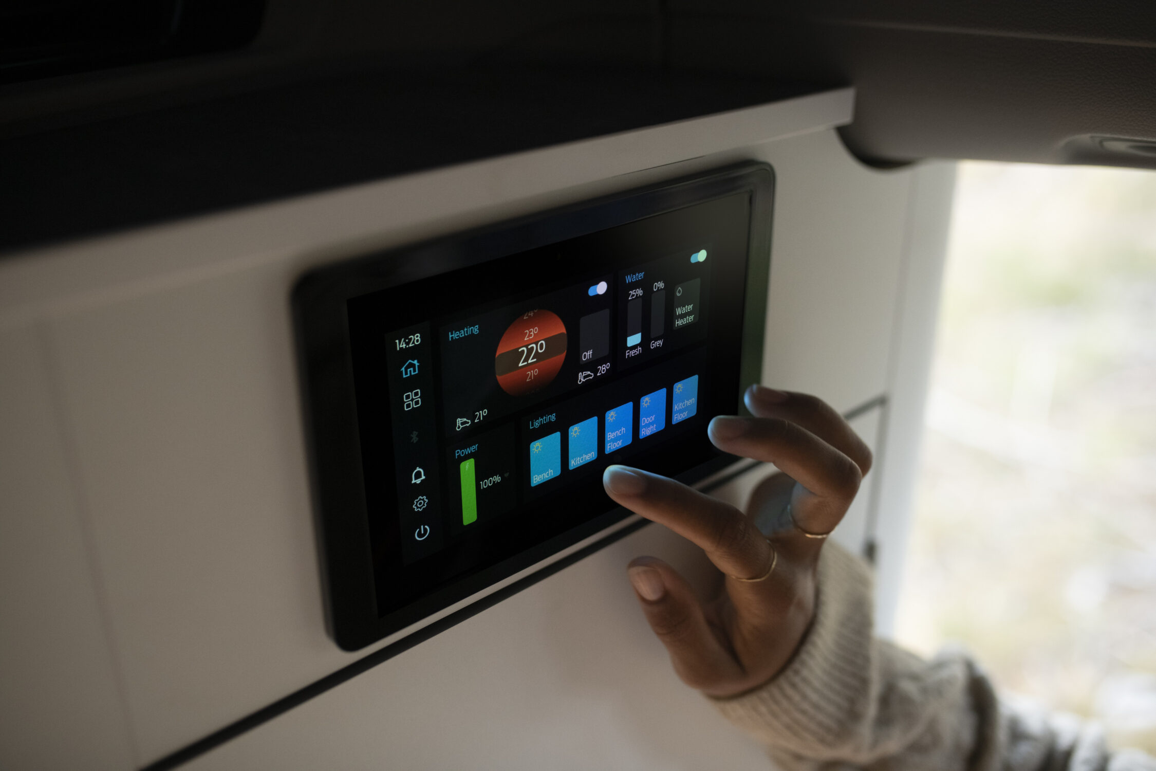 Speciální 7palcová barevná dotyková obrazovka v obytném prostoru usnadňuje ovládání vytápění a osvětlení, stejně jako kontrolu hladiny vody a stavu baterie. K novým funkcím patří:
