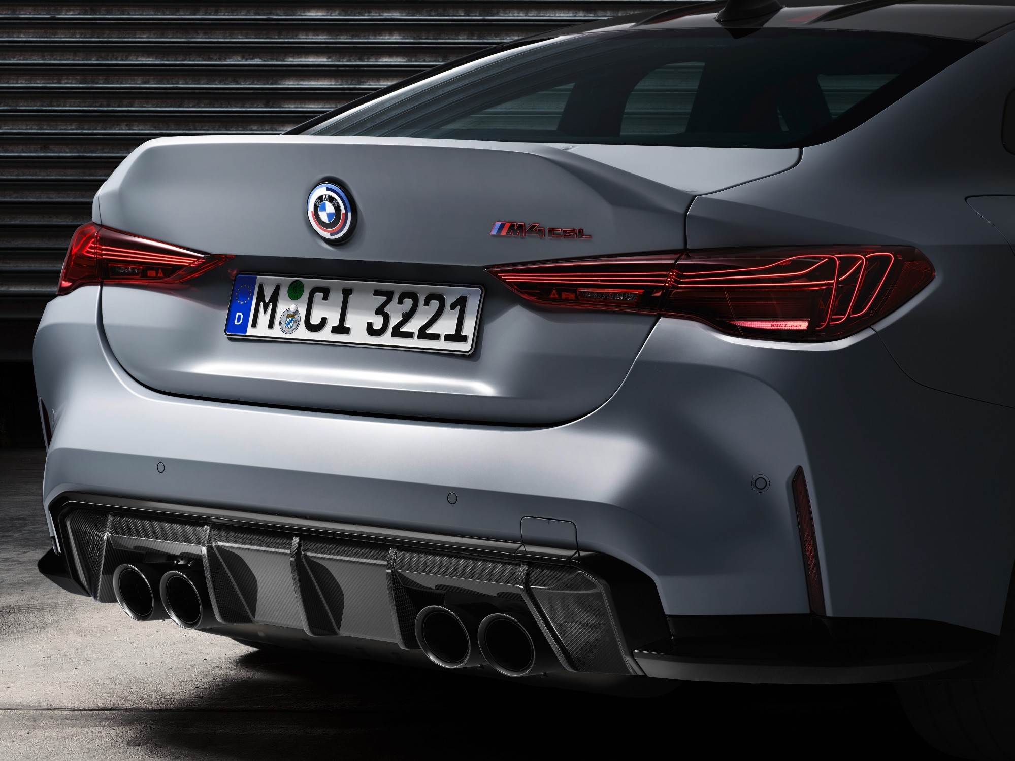 Zadní LED světla nového BMW M4 CSL jsou standardně vybavena technologií, která se v sériově vyráběném voze objevuje vůbec poprvé. Jejich skleněné kryty v sobě mají propletenou strukturu světelných vlásečnic, které osvětluje laserová technologie, což vytváří živou strukturu povrchu světel. Vzniká tak velmi osobitý světelný podpis, který je za tmy rozpoznatelný i na velkou vzdálenost.