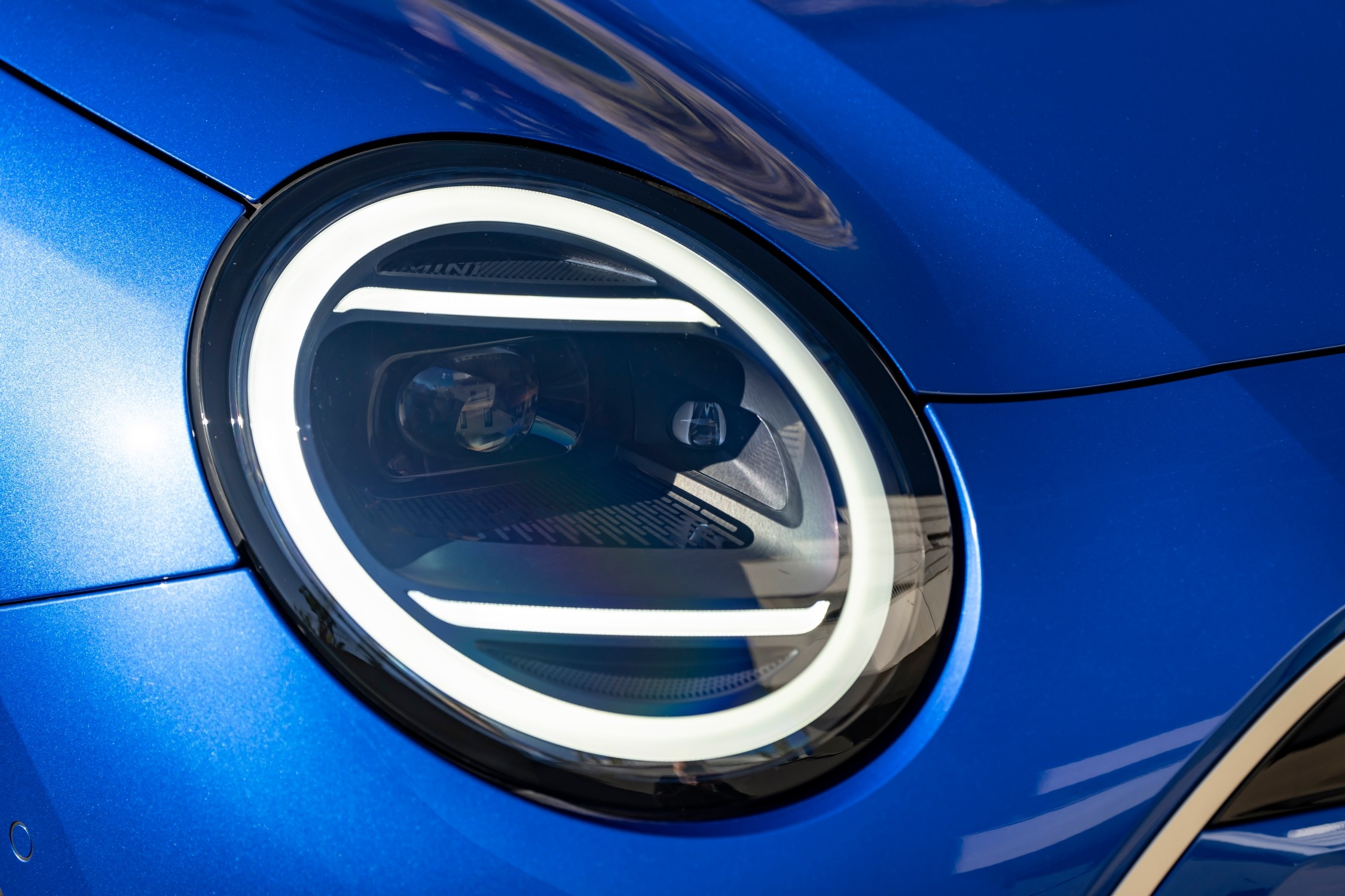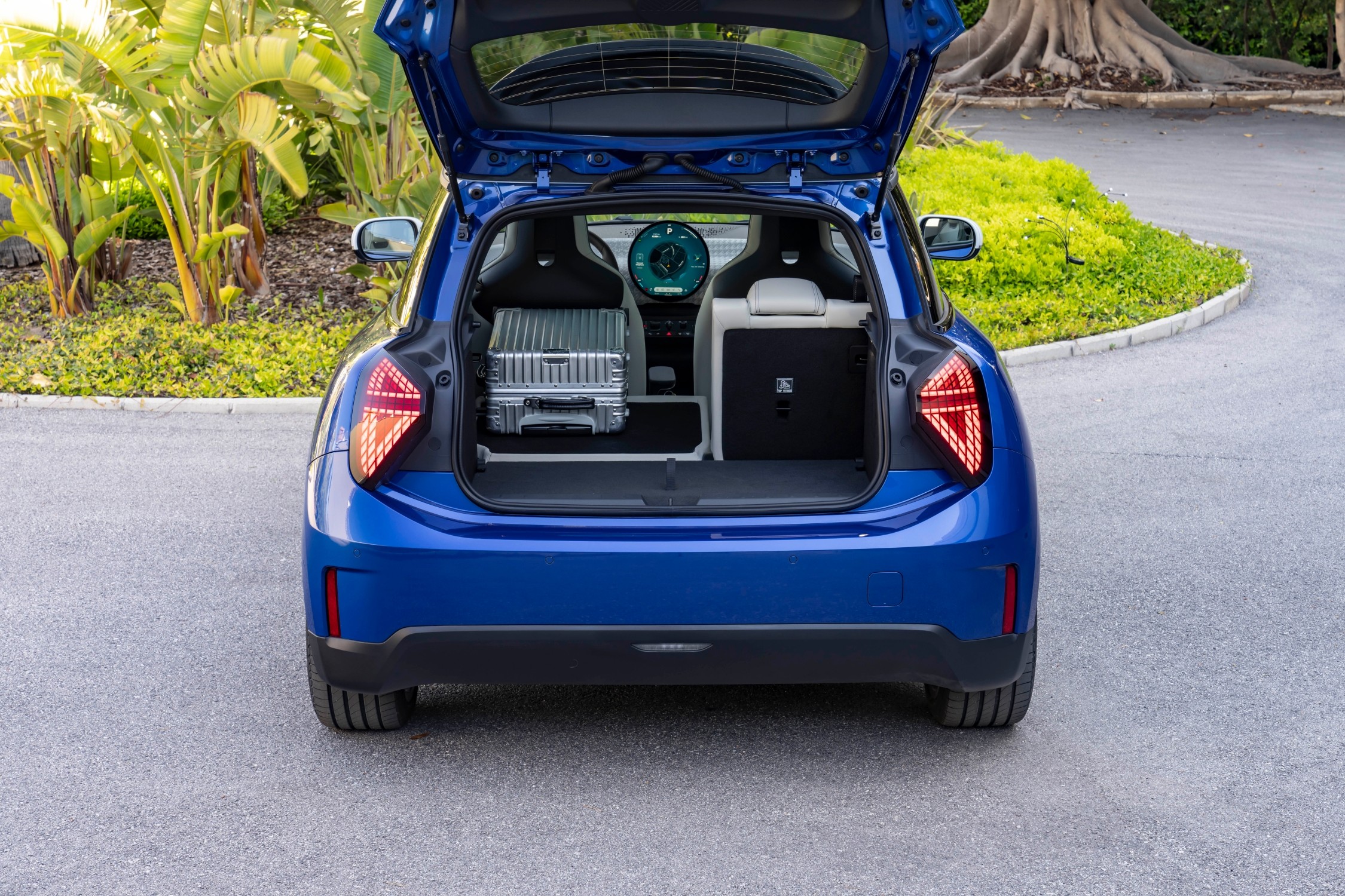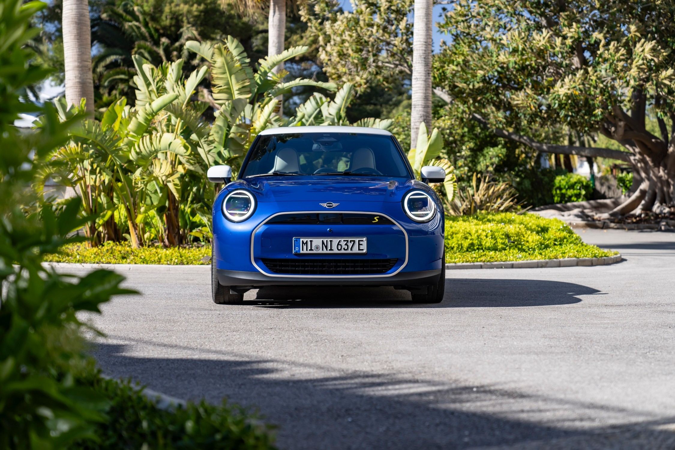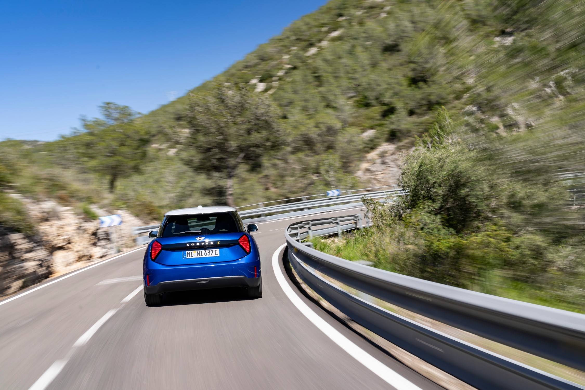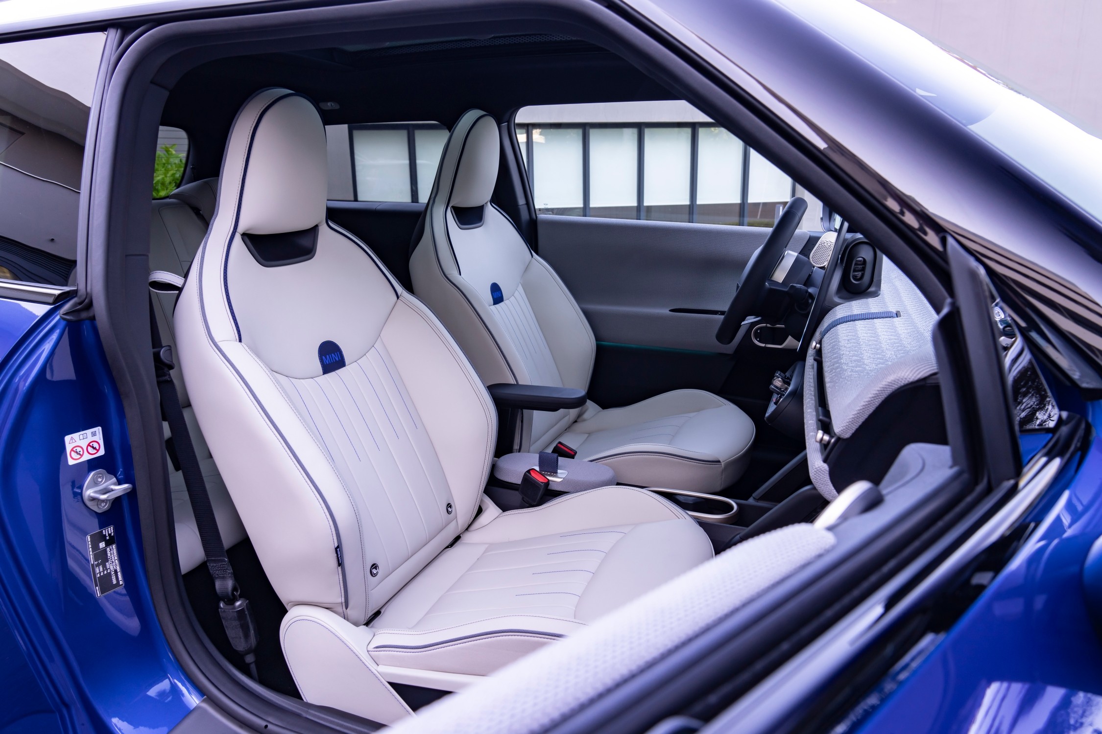 MINI Cooper SE doplněné paketem Favoured, zde v modré barvě Blazing Blue, a kontrastní bílou střechou je nejvýraznějším provedením, které zaujme svým moderním a do detailů propracovaným designem. Individuální styl podtrhují detaily, jako je rámeček masky ve světle stříbrné barvě Vibrant Silver, LED světlomety a panoramatická skleněná střecha. Interiér doplňují sportovní sedadla čalouněná syntetickou kůží Vescin, textilní povrchy a špičkový OLED displej.