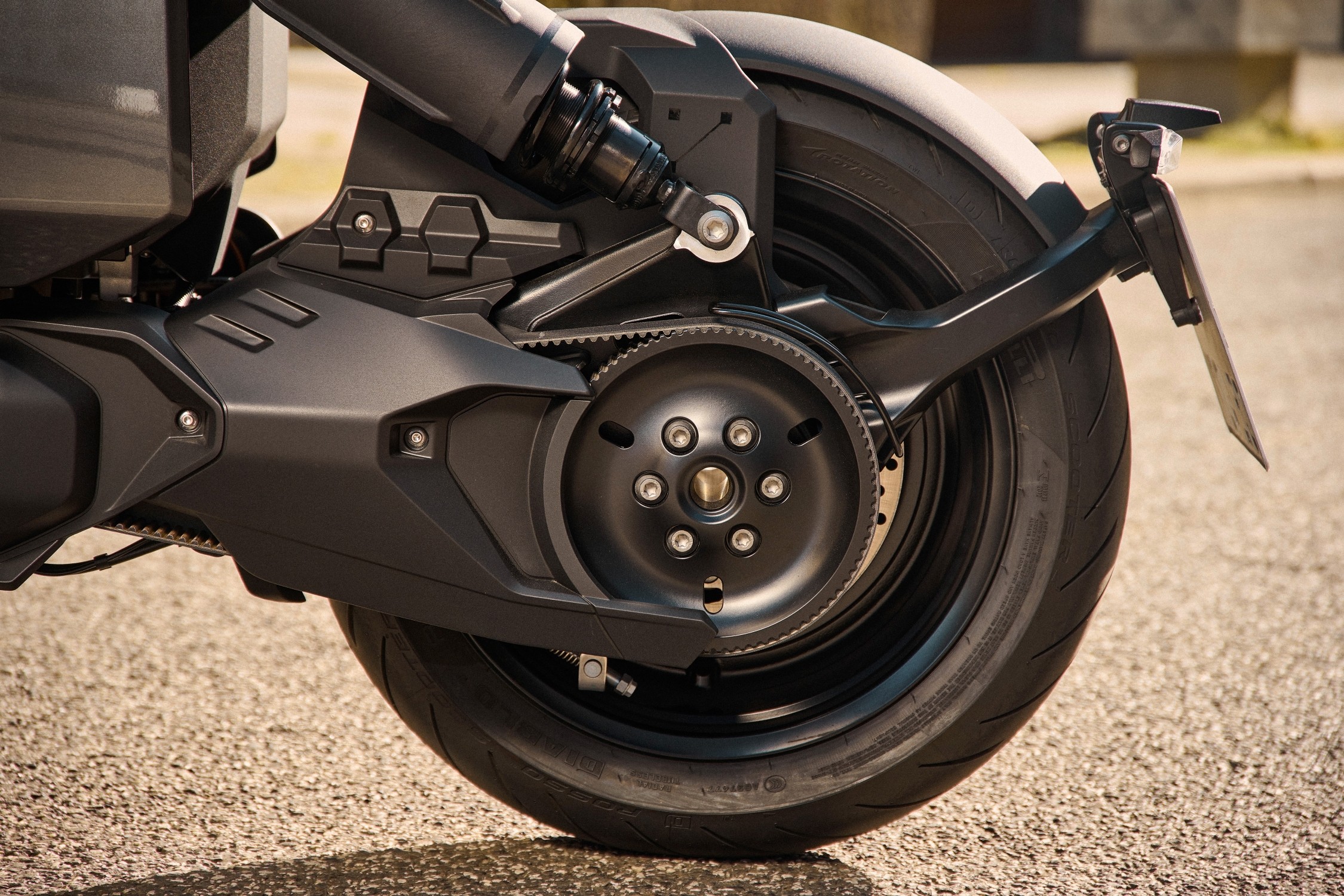 Nové BMW CE 04 má elektromotor s permanentním magnetem umístěný v rámu mezi baterií a zadním kolem. Jde o obdobný motor, jaký se používá například v BMW 225xe Active Tourer. BMW Motorrad provedlo rozsáhlé jízdní testy, jejichž cílem bylo vyvinout specifický účinek rekuperace pro každý jízdní režim. To znamená, že potřebný výkon a jízdní vlastnosti jsou k dispozici v každé situaci na silnici.