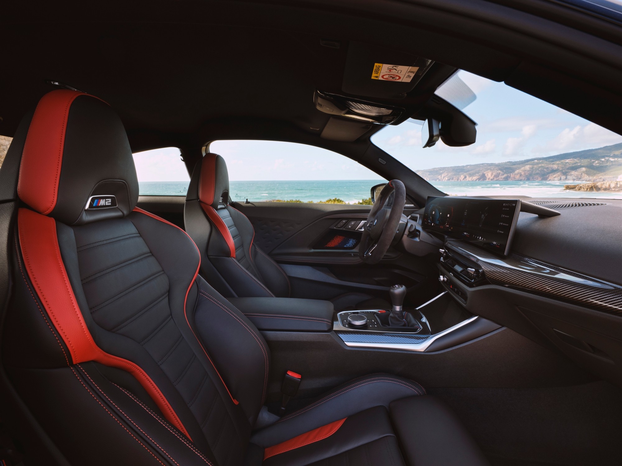 Volitelná M sportovní sedadla čalouněná kůží Vernasca lze nyní objednat rovněž v červeno-černé variantě. Odlehčená M karbonová skořepinová sedadla jsou nyní pro nové BMW M2 k dispozici nejen ve spojení s paketem M Race Track, ale také jako samostatná volitelná výbava. Vyznačují se čalouněním kůží Merino, elektrickým nastavováním, odnímatelnými opěrkami hlavy a možností přidání vícebodových bezpečnostních pásů. Zvyšují jak úroveň komfortu, tak i ambice při jízdě na závodních okruzích.