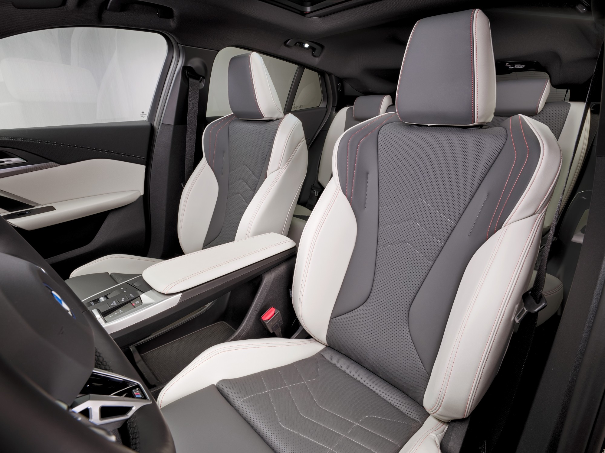 Interiér nového BMW X2 se vyznačuje moderní prémiovou atmosférou se sportovním nádechem. Nízká palubní deska, na níž se nachází BMW Prohnutý displej, je doplněna jakoby levitující loketní opěrkou s integrovaným ovládacím panelem. V přední části středové konzoly jsou instalovány dva držáky nápojů a osvětlená přihrádka na telefon s bezdrátovým nabíjením.