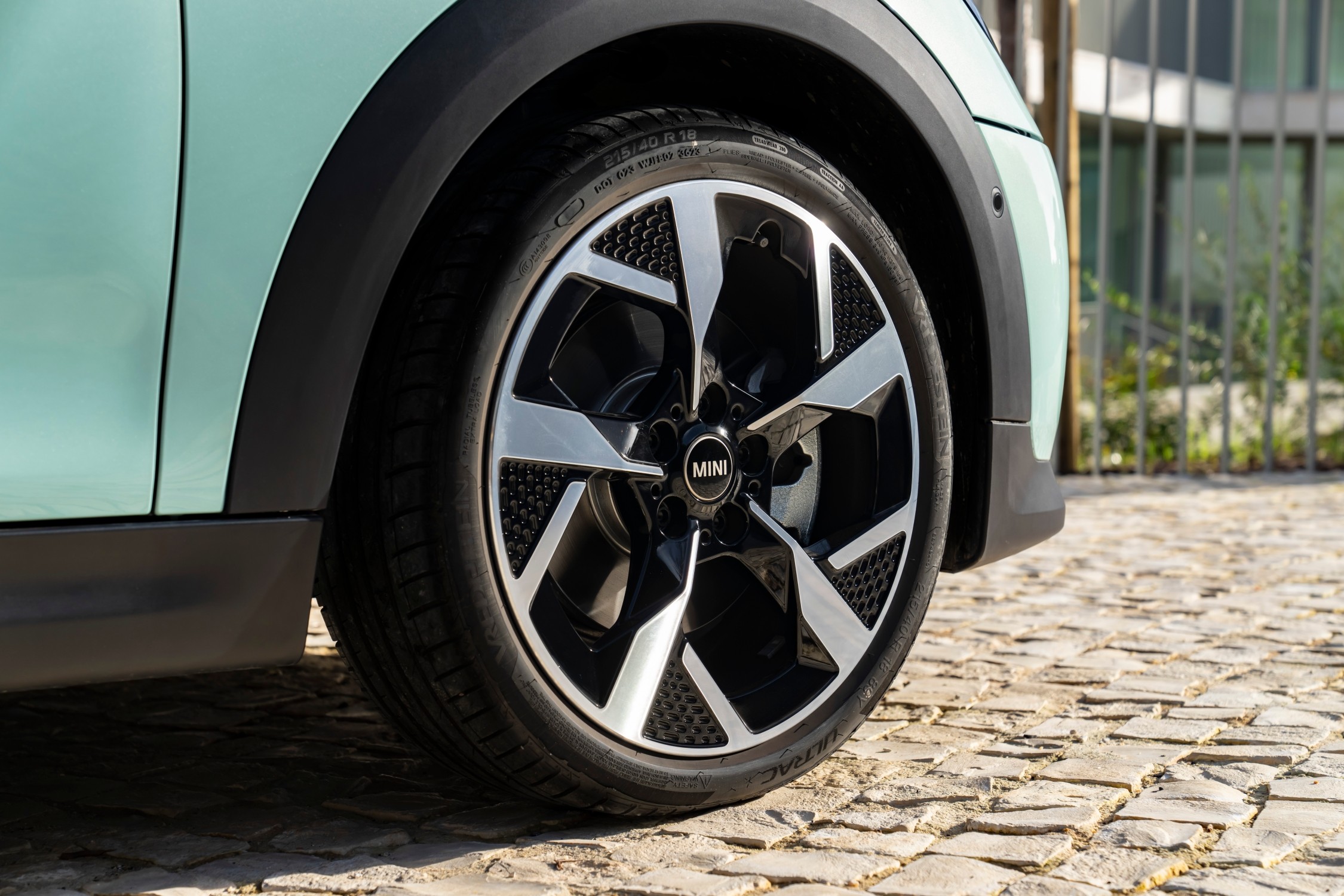 Malé převisy a krátká kapota kontrastují s dlouhým rozvorem a dodávají vozu typické proporce MINI. Na výběr jsou připravena kola s průměry od 16 do 18 palců.