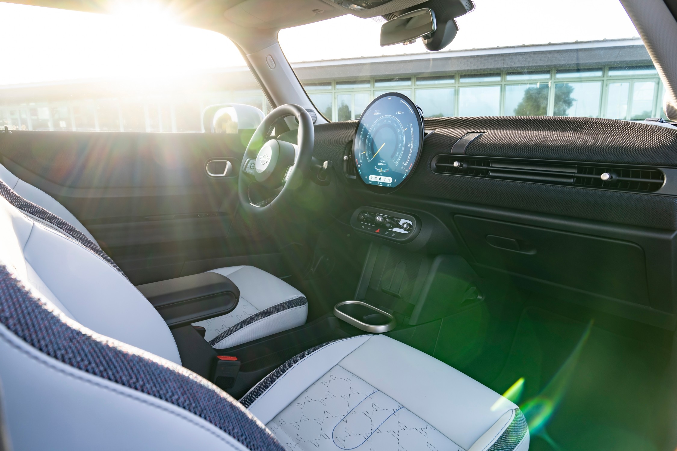 Ve výbavě Classic se palubní deska vyznačuje černo-modrými plochami tvořenými úpletem. Sedadla čalouněná kvalitním materiálem Vescin v šedé nebo černé barvě vytvářejí s ostatními prvky interiéru výrazný kontrast. Stylový vzor perforace „Houndtooth“ na opěradle i sedáku, stejně jako modré ozdobné prošívání a výrazné látkové vložky na bocích podtrhují nezaměnitelný charakter interiéru tohoto MINI.