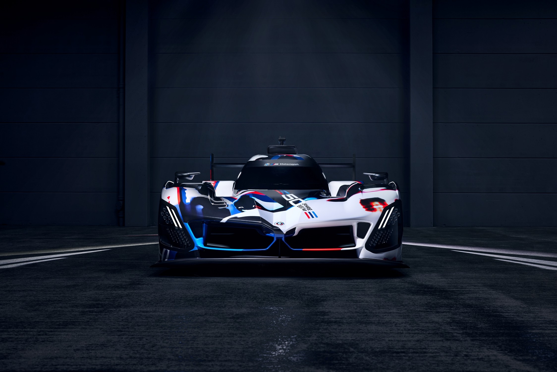 „Úkolem mého týmu bylo, aby BMW M Hybrid V8 vypadalo jako BMW a využilo všech možností, aby se jako BMW chovalo i na závodní trati,“ řekl Michael Scully, ředitel BMW Group Designworks Global Automotive. „Design vychází z DNA BMW, pro niž je typické účelové zaměření na výkonnost, ale také odvaha a odhodlaný charakter, jenž se v minulosti projevoval například přeplňováním a nyní efektivním hybridním elektrifikovaným pohonem. Kamufláž oslavuje 50 let BMW M tím, že připomíná velké vozy z historie BMW v závodech IMSA a zároveň bude jedinečným způsobem maskovat tvary a technické řešení exteriéru BMW M Hybrid V8 během jeho testování na závodních tratích. Pokud se na karoserii podíváte pozorněji, objevíte několikanásobné vítěze závodu 24 hodin Daytona a také vůbec první účelově postavený vůz IMSA GTP z roku 1981 – BMW M1/C. Na toto grafické provedení navážeme továrním lakováním, které bude příkladem dynamiky a vzrušení ze závodů s hybridním elektrickým pohonem.“