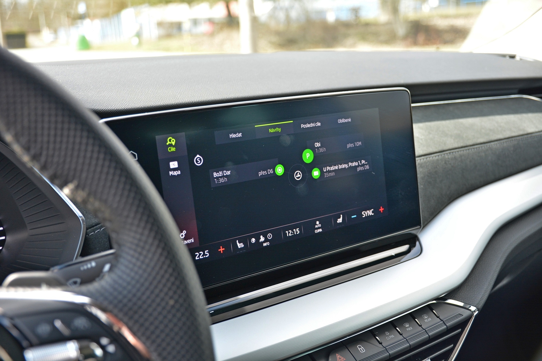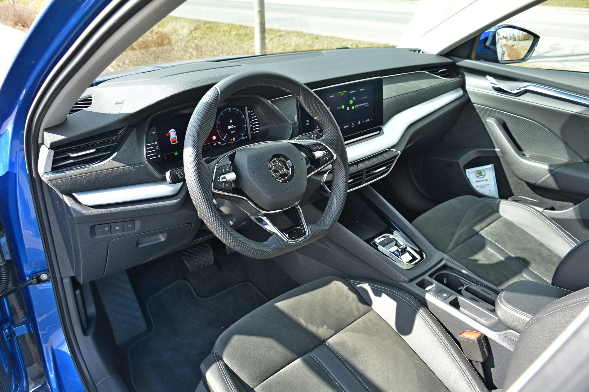 Výbavu lze samozřejmě volit, a za mne, oželel bych řadu věcí, ale opět to není výtka, spíše skromnost, nebo předpoklad toho, že Octavia bude vzdálenější Superbu. Méně designu? Zase, auto vypadá velmi dobře. Až moc dobře. Tady udělala Škoda dlouhý kus dopředu, mně se Octavia líbí. Ale vzhledem jako by slibovala něco, co pak nemůže splnit. A vlastně ani nemá splnit. Zvenku štíhlá a sošná silueta, řekl bych až sportovní. Uvnitř některé pro mne zbytečné kudrlinky, ale pěkný volant, dobré sedačky. Nechci napsat až moc dobré. Zase asi jen vnímám ten obrovský posun od předchozí generace.