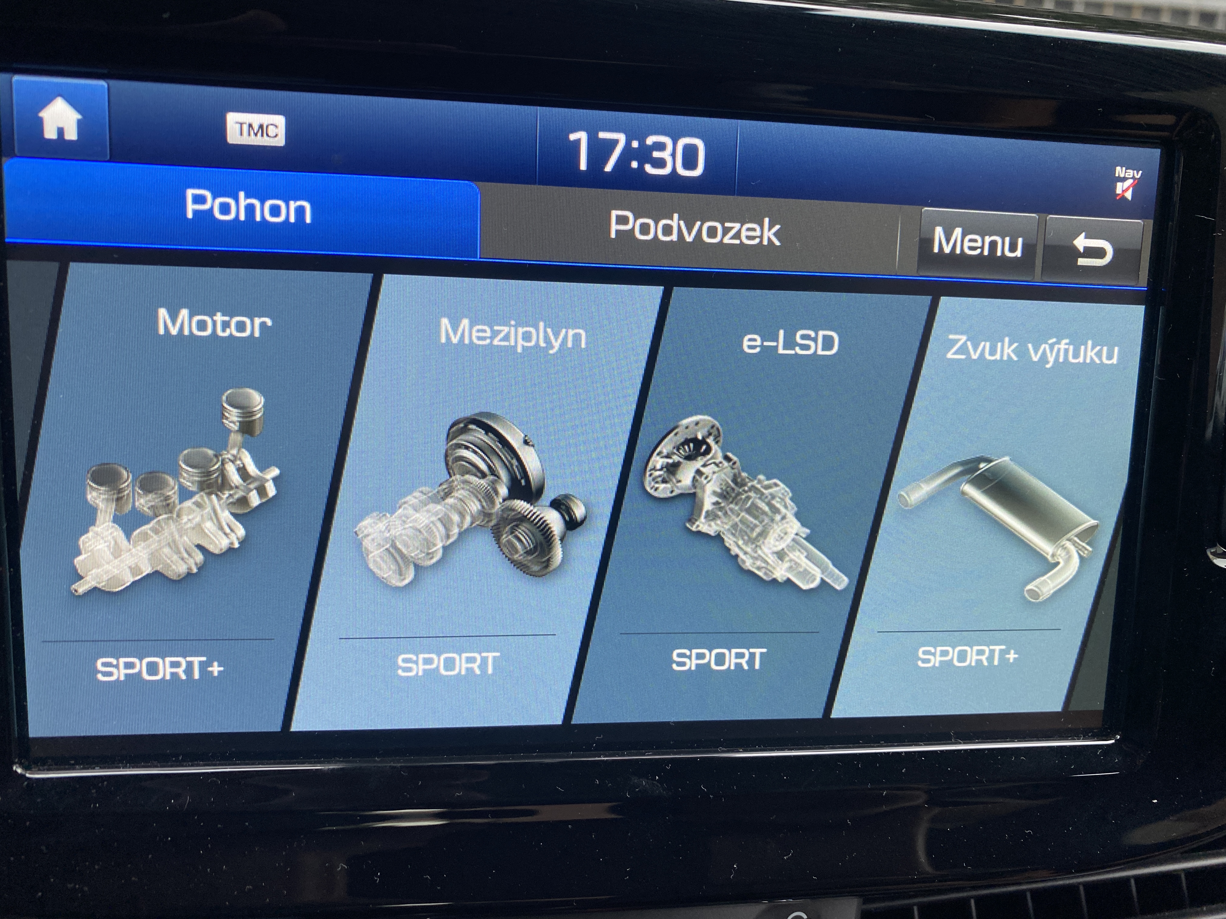 Rozhraní řidiče a auta zajištuje pro Hyundai obvyklé sada tlačítek, ovladačů, displej, tady asi neumím nic moc rozebírat. Je tady ale pár tlačítek, která u běžné i30 nenajdeme.