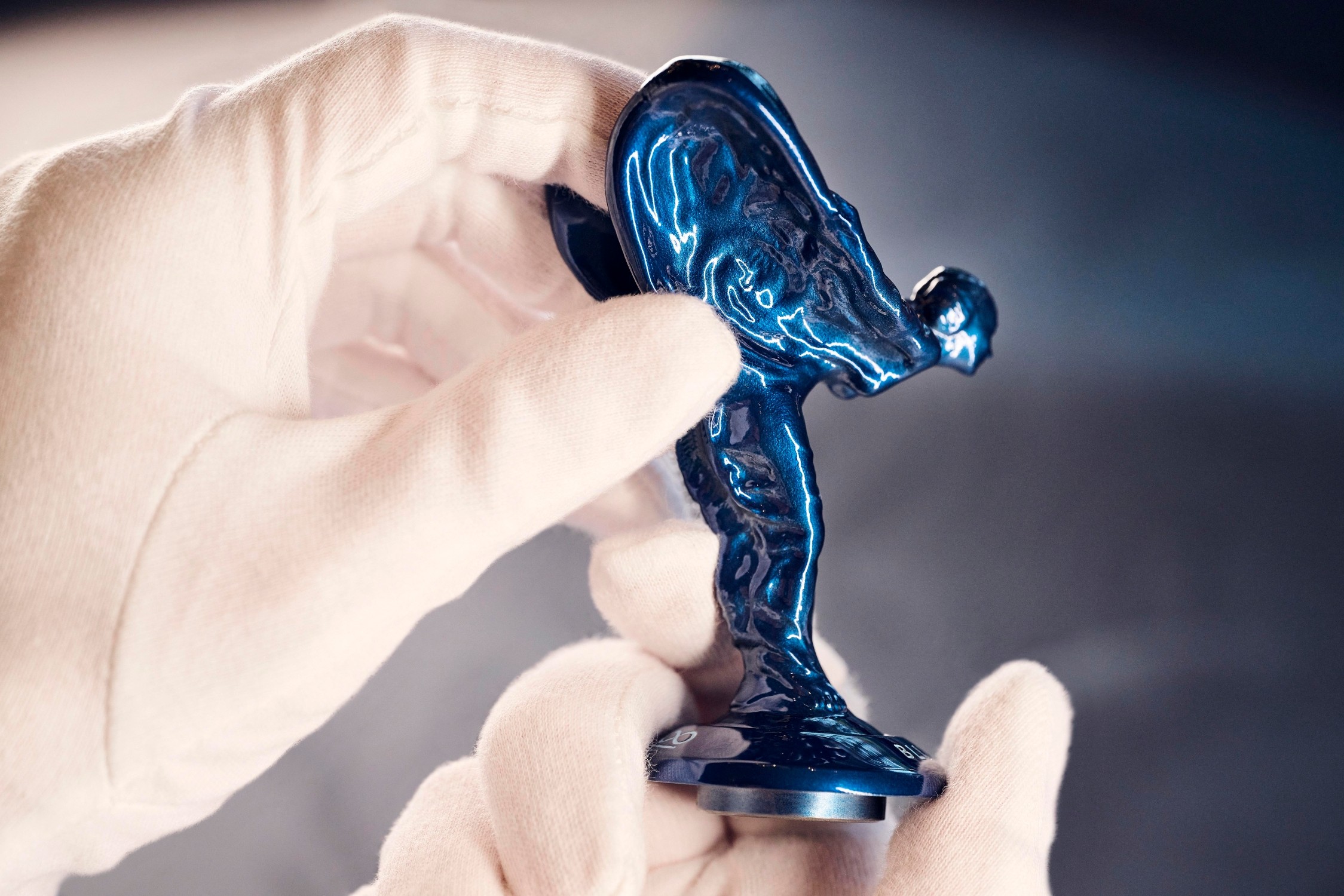 Soška Spirit of Ecstasy je vytvořena z materiálu kosmických lodí: vznikla pomocí techniky 3D tisku z titanu. Je pokryta tenkou vrstvou modrého laku, který obsahuje perleť a zároveň odhaluje zrnitou texturu titanu. Logo Black Badge a název Blue Shadow Private Collection jsou vyryty na základně sošky Spirit of Ecstasy a vyplněny barvou modrá Charles. Kola modelu Blue Shadow, která dotvářejí vnější estetiku vozu, jsou jemně zatmavena pomocí průsvitného laku.