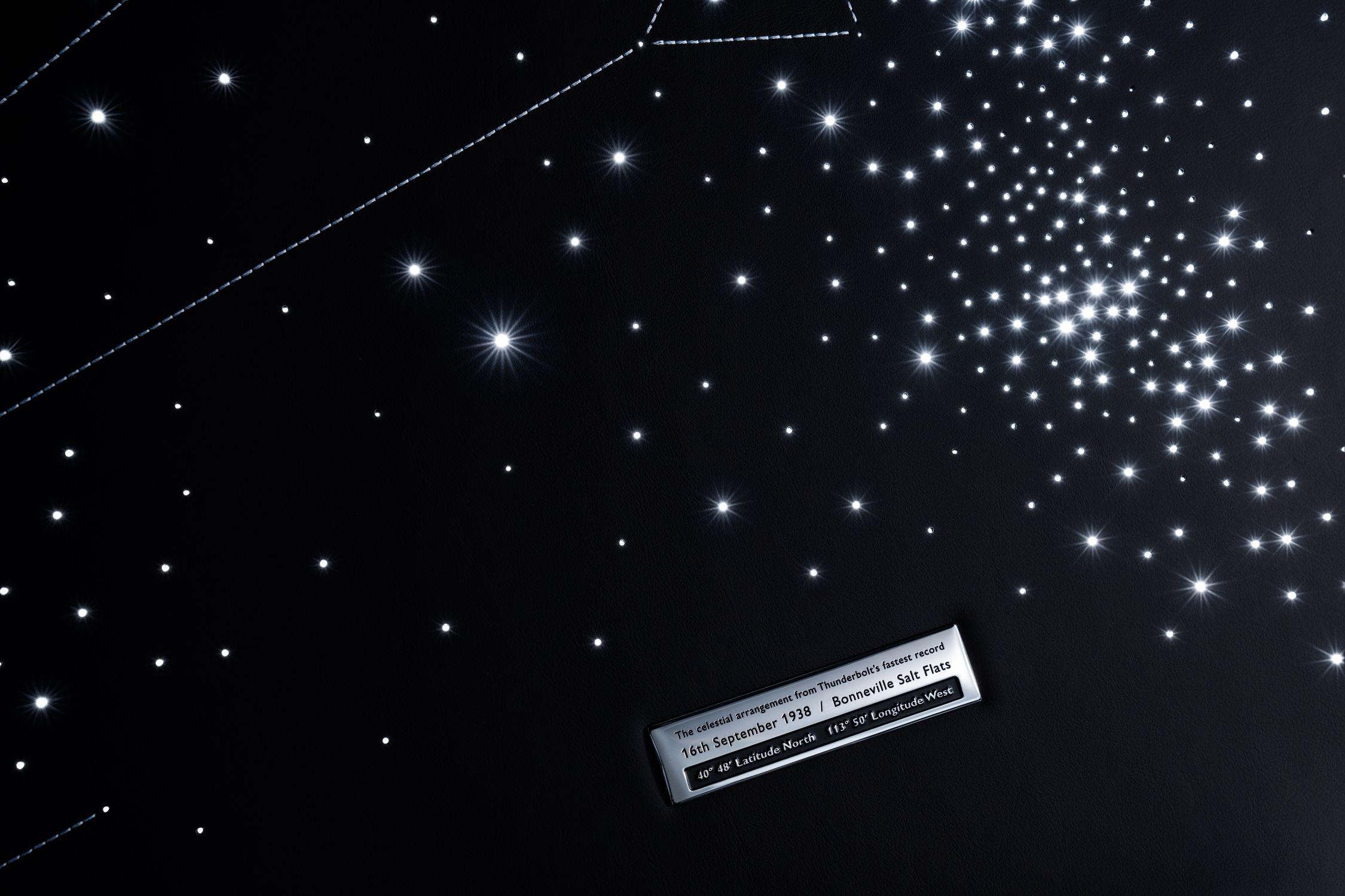 Také detaily interiéru připomínají solné pláně Bonneville v Utahu, kde Eyston v letech 1937–38 usiloval o dosažení nových rekordů. Rozpraskanou strukturu dokonale reprodukuje gravírovaná fascia; detaily na volantu napodobují tmavou stopu pneumatik zanechanou na povrchu plání během jízd. Strop kabiny Starlight Headliner věrně vystihuje noční oblohu dne 16. září 1938, kdy Eyston dosáhl svého třetího a posledního rychlostního rekordu 357,497 mil za hodinu.