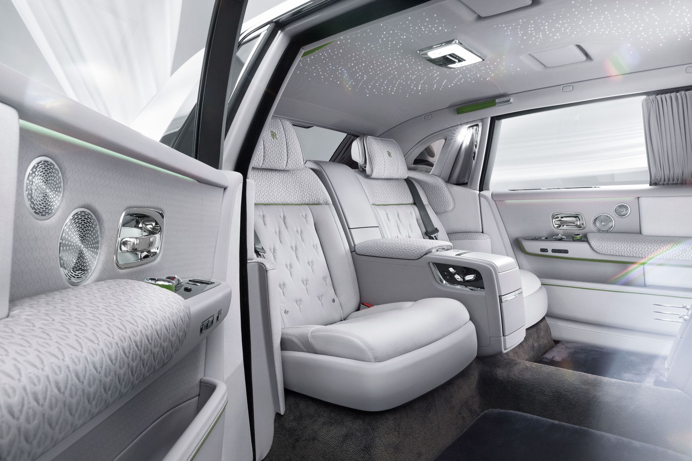 Jemné stylistické úpravy se dotkly také mřížky a díky tomu jsou logo RR i soška Spirit of Ecstasy při čelním pohledu ještě nápadnější. Samotná mřížka je nyní podsvětlená. Přední světlomety získaly rafinované zdobení laserem vyřezanými otvory, které připomínají hvězdnou oblohu, a vizuálně navazují na podobně řešené stropní obložení Starlight. Model Phantom tak přidává další překvapivý a efektní prvek v nočním prostředí.