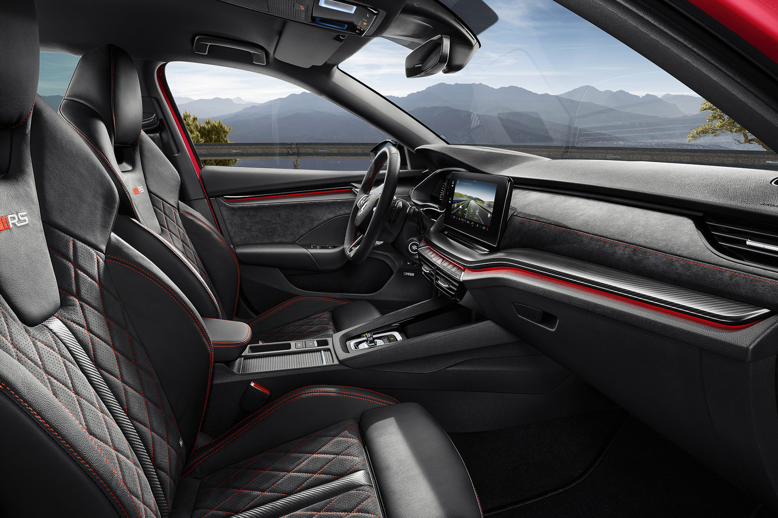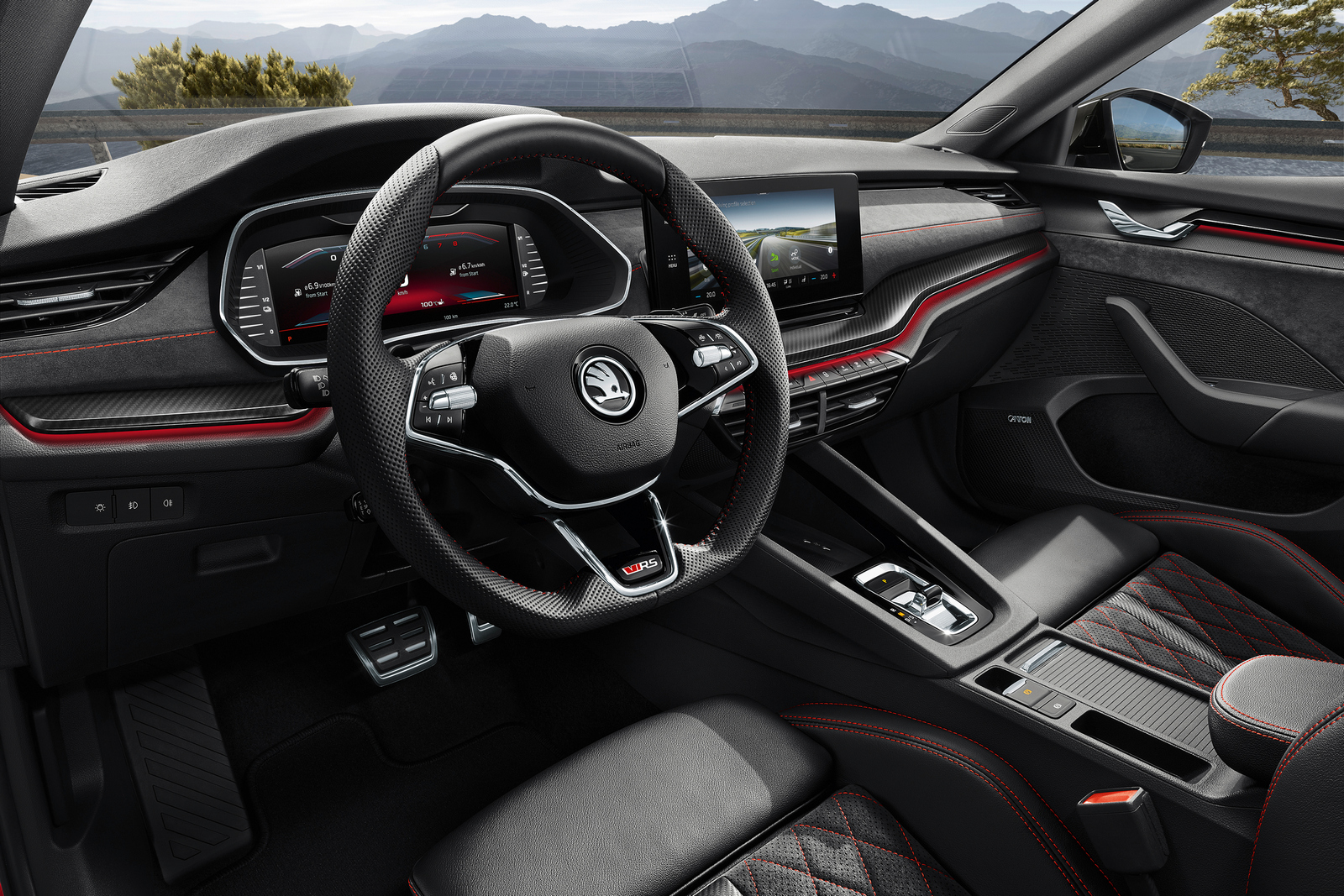Bohužel toho Škoda o nové Octavia RS iV ještě moc neřekla, zejména údaje o zrychlení a podobně. Víme zatím jen opravdu základní věci, tedy že se bude plug-in hybridní Octavia RS prodávat také jako praktické kombi, že má v základu 19″ disky kol a velké 17″ brzdy a že dostane full-LED Matrix světlomety. Uvnitř jsou anatomické sedačky, dekor interiéru připomínající karbonová vlákna a nechybí ani ambientní podsvícení interiéru a nějaká ta loga RS. Samozřejmostí je také digitální přístrojový štít.