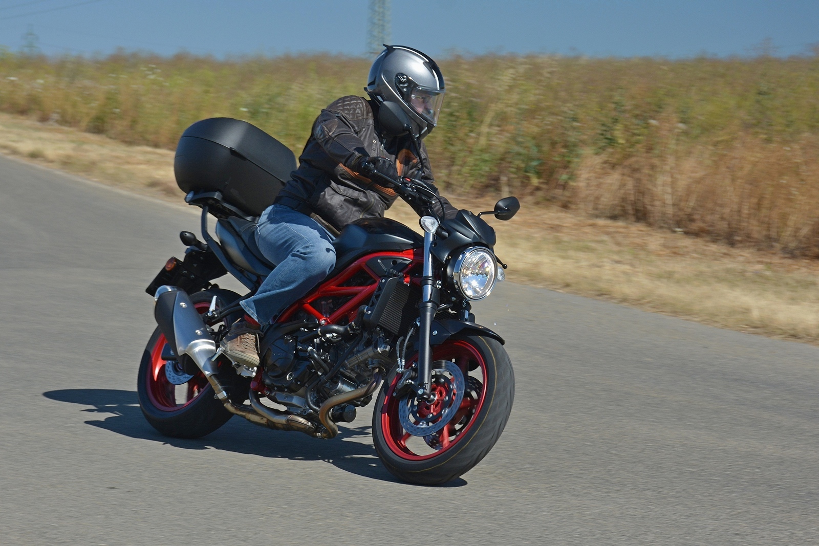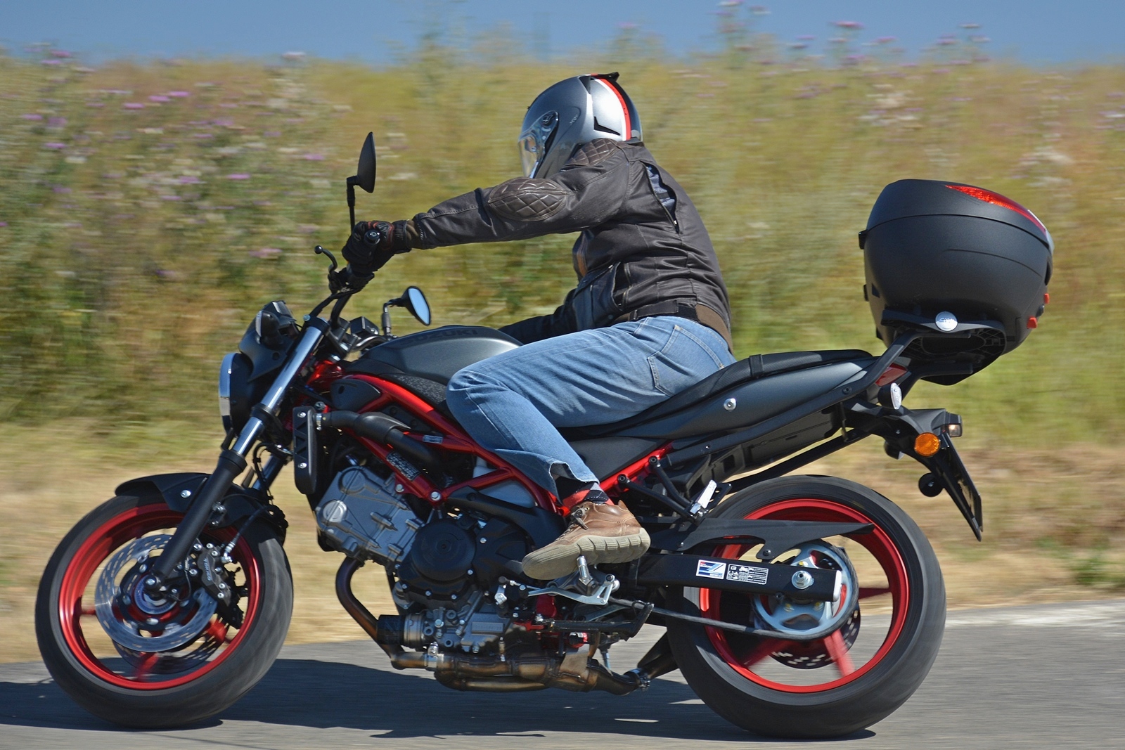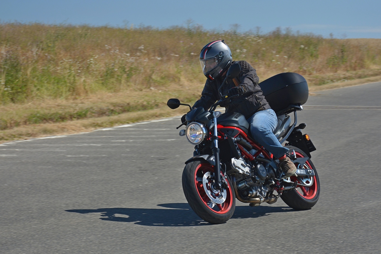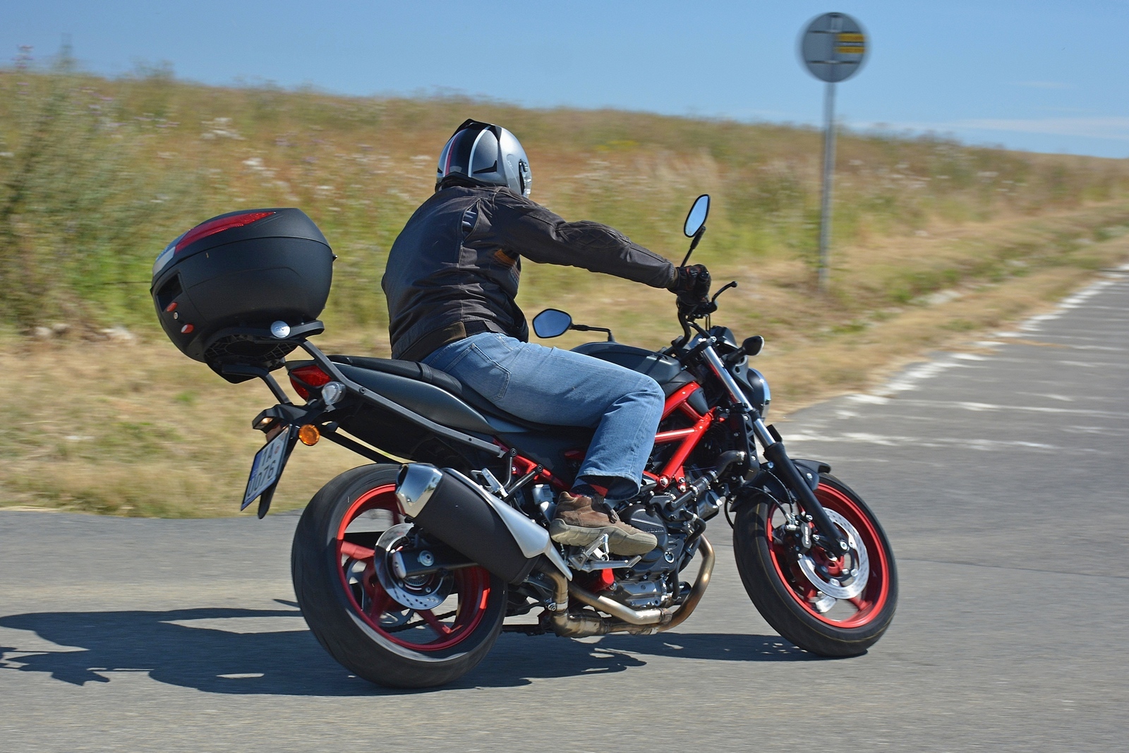 Tahle Suzuki SV650 nemá žádné zvláštní požadavky a funguje spolehlivě jako hodinky. Nastartuje za každých okolností, chová se předvídatelně a je opravdu hodná. Ideální motorka pro začátečníka? To rozhodně, protože dovolí postupné odhalování limitů a ani při vyšším tempu není zákeřná a kousavá. Moc pěkně se na ní ale sveze i zkušený jezdec. Motorka skvěle brzdí, nekroutí se a výkonu má dost. A když na ní hodíte ten praktický kufr, vlastně se z ní stane nejlepší dopravní prostředek do ucpaného města. Kufr pojme celou helmu, případně docela velký nákup.