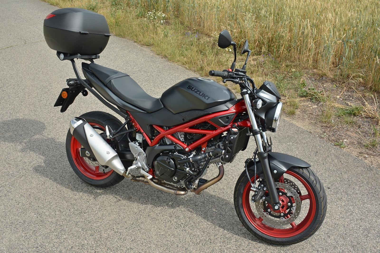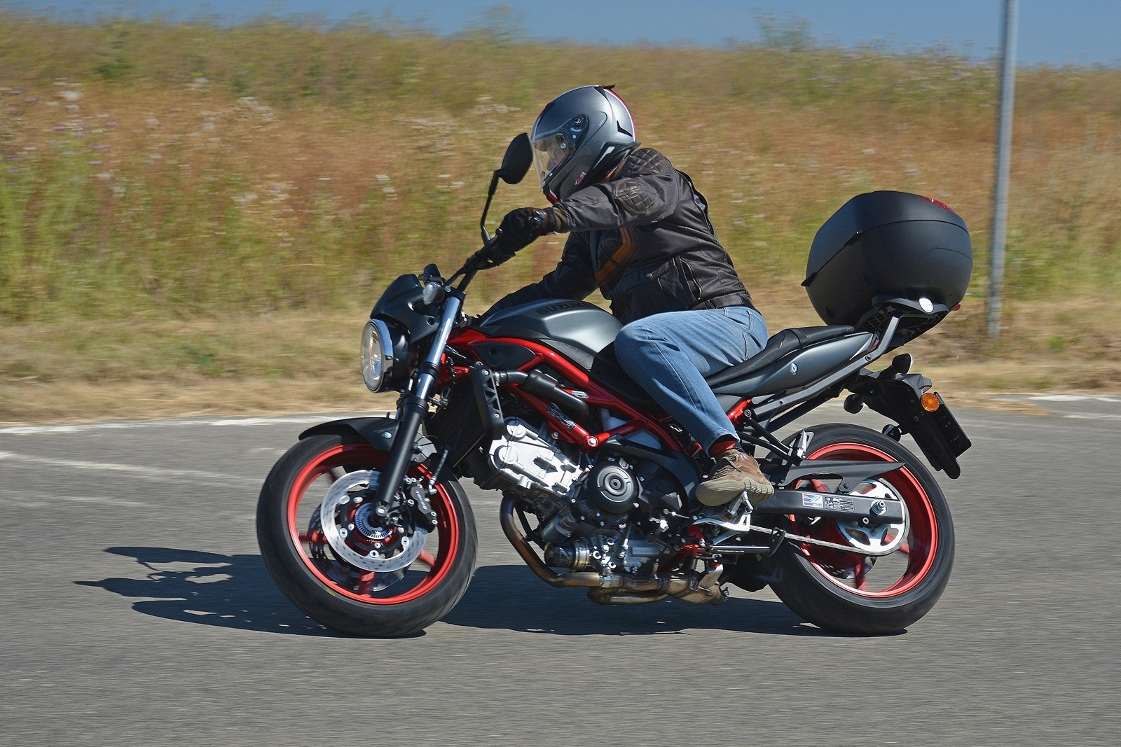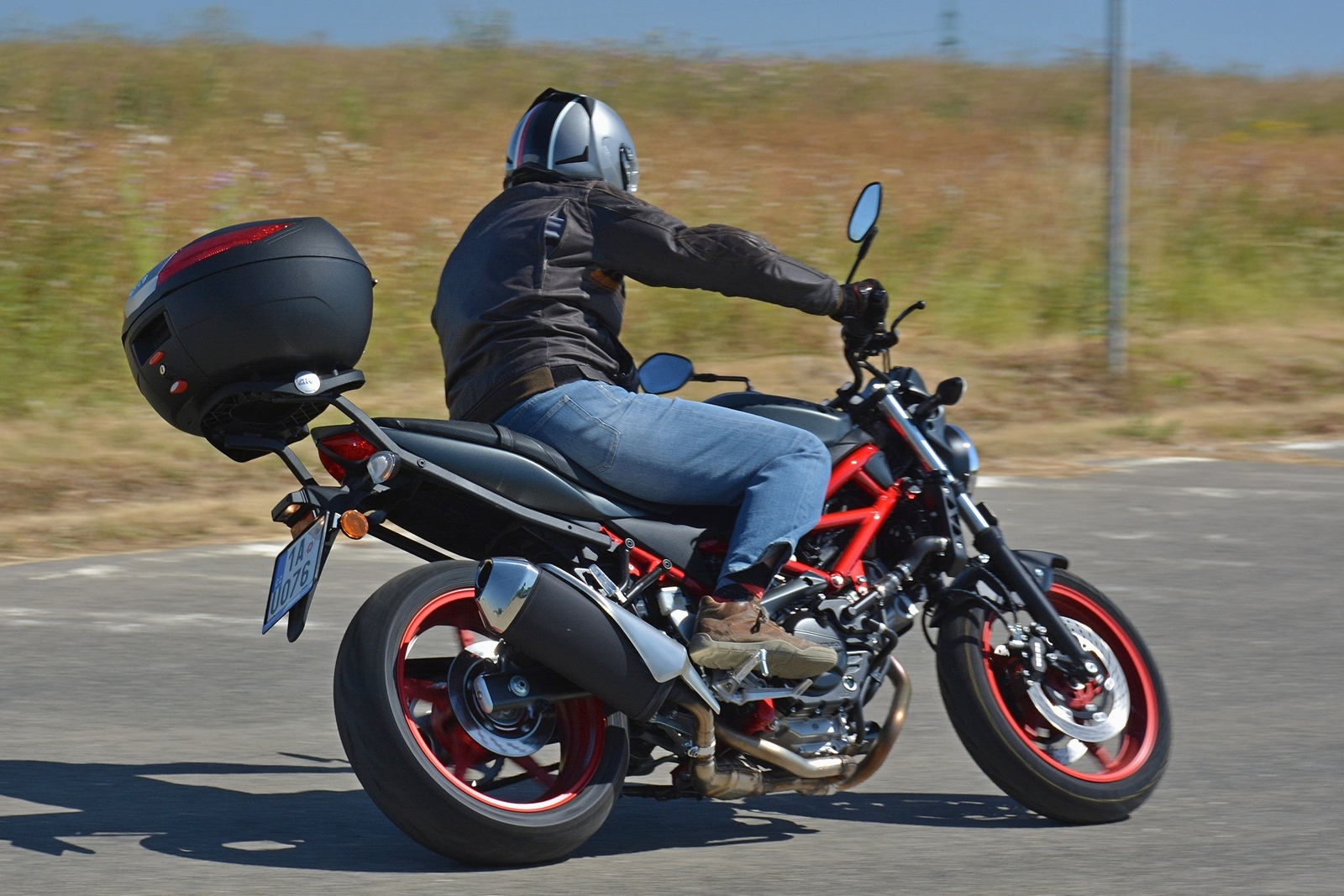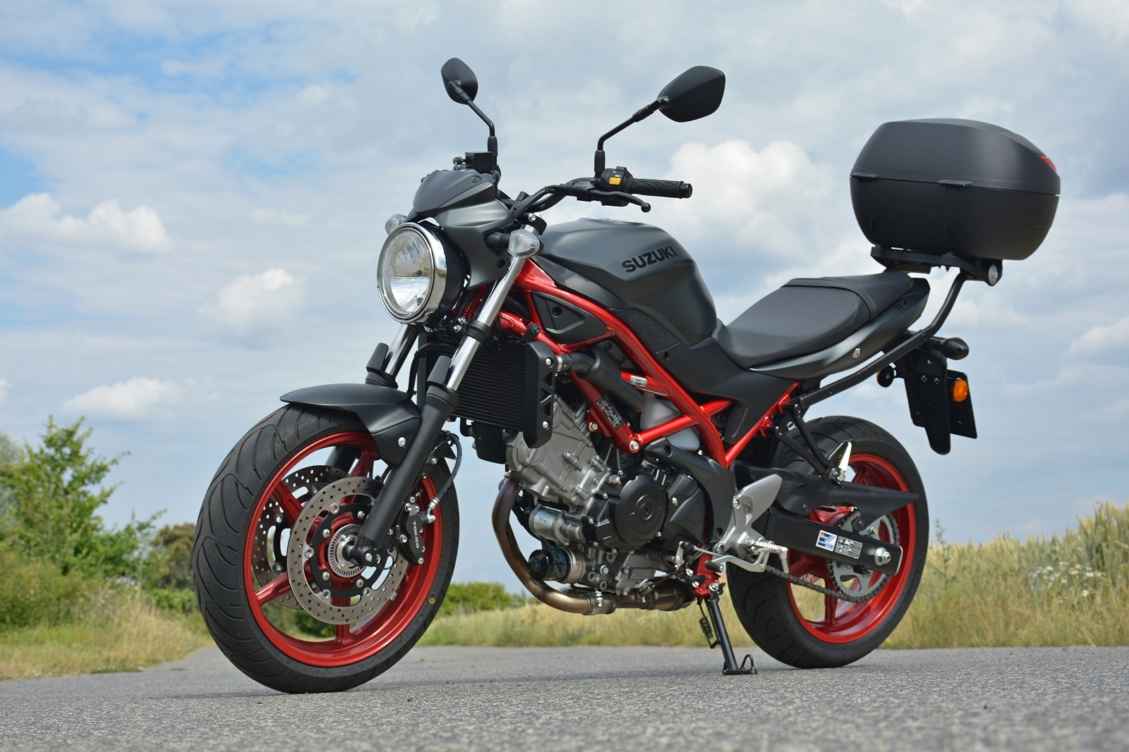 Tahle Suzuki SV650 nemá žádné zvláštní požadavky a funguje spolehlivě jako hodinky. Nastartuje za každých okolností, chová se předvídatelně a je opravdu hodná. Ideální motorka pro začátečníka? To rozhodně, protože dovolí postupné odhalování limitů a ani při vyšším tempu není zákeřná a kousavá. Moc pěkně se na ní ale sveze i zkušený jezdec. Motorka skvěle brzdí, nekroutí se a výkonu má dost. A když na ní hodíte ten praktický kufr, vlastně se z ní stane nejlepší dopravní prostředek do ucpaného města. Kufr pojme celou helmu, případně docela velký nákup.