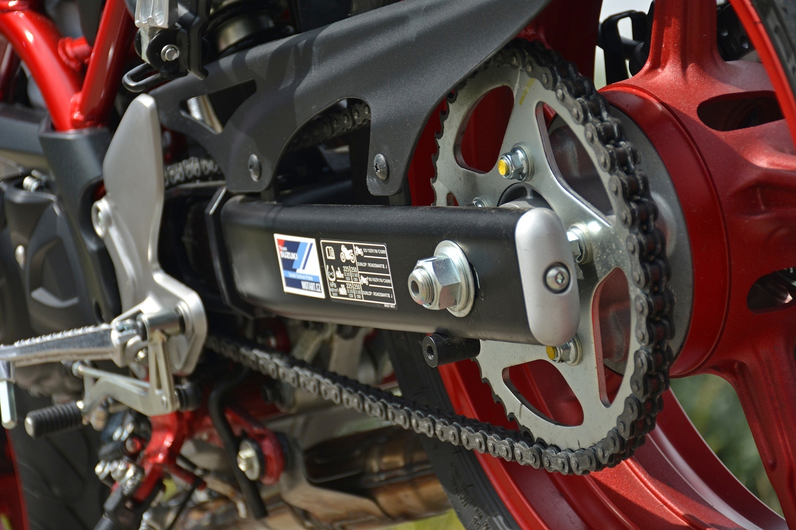 Tvrdé sedlo řidiče nutí se hýbat, takže místo dálničních přesunů to raději vezmete po okresce. A tam funguje Suzuki opravdu dobře. S hmotností pod 200 kg je opravdu lehkonohá a přehazovat ji ze strany na stranu je hračka. Dvouválec má pak dost síly na to, aby motorku vytahoval z vraceček na vyšší kvalty, takže není potřeba řadit dolů až na jedničku. Trojka vlastně pobere úplně všechno a od 2500 otáček táhne motor plynule a odhodlaně až k nejvyššímu výkonu 76 koní u 8500 otáček. Nezdá se to moc, ale na lehkého naháče tenhle výkon naprosto stačí.