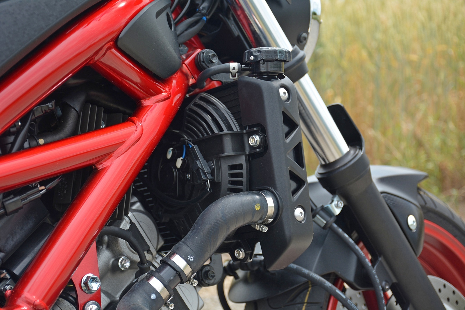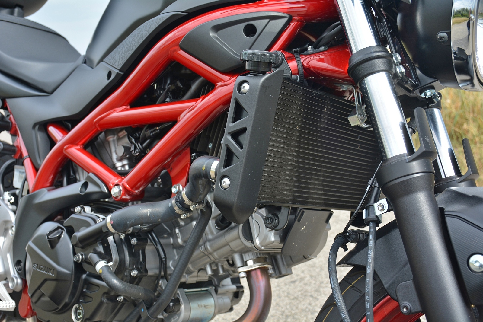 Suzuki SV650 je klasický naháč a i přes opravdu jednoduché řešení podvozku a konstrukce je to moderní motorka se vším, co k tomu patří. Dvouválec o objemu 650 cm3 je chlazený vodou, má elektronicky řízené vstřikování benzínu a automatický sytič. Ústupek emisní normě Euro 4? Možná, ale díky tomu motorka jednoduše startuje a nemusíte v chladném a vlhkém počasí řešit, proč se startér točí naprázdno a proč se motorka „uchlastává“. Tyhle karburátorové starosti se už dneska fakt řešit nemusí a díky tomu se člověk může na motorku kdykoli spolehnout.