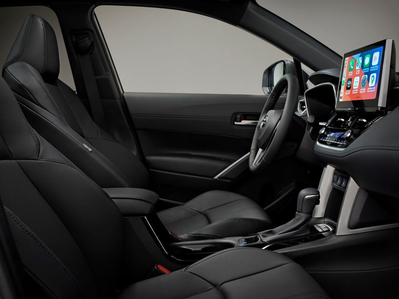 Úroveň pasivní bezpečnosti nové Corolly Cross zvyšuje mimořádně tuhá podvozková platforma GA-C; nový středový boční airbag pro přední sedadla pomáhá zabránit vzájemnému střetu předních pasažérů v případě nárazu do vozidla z boku.