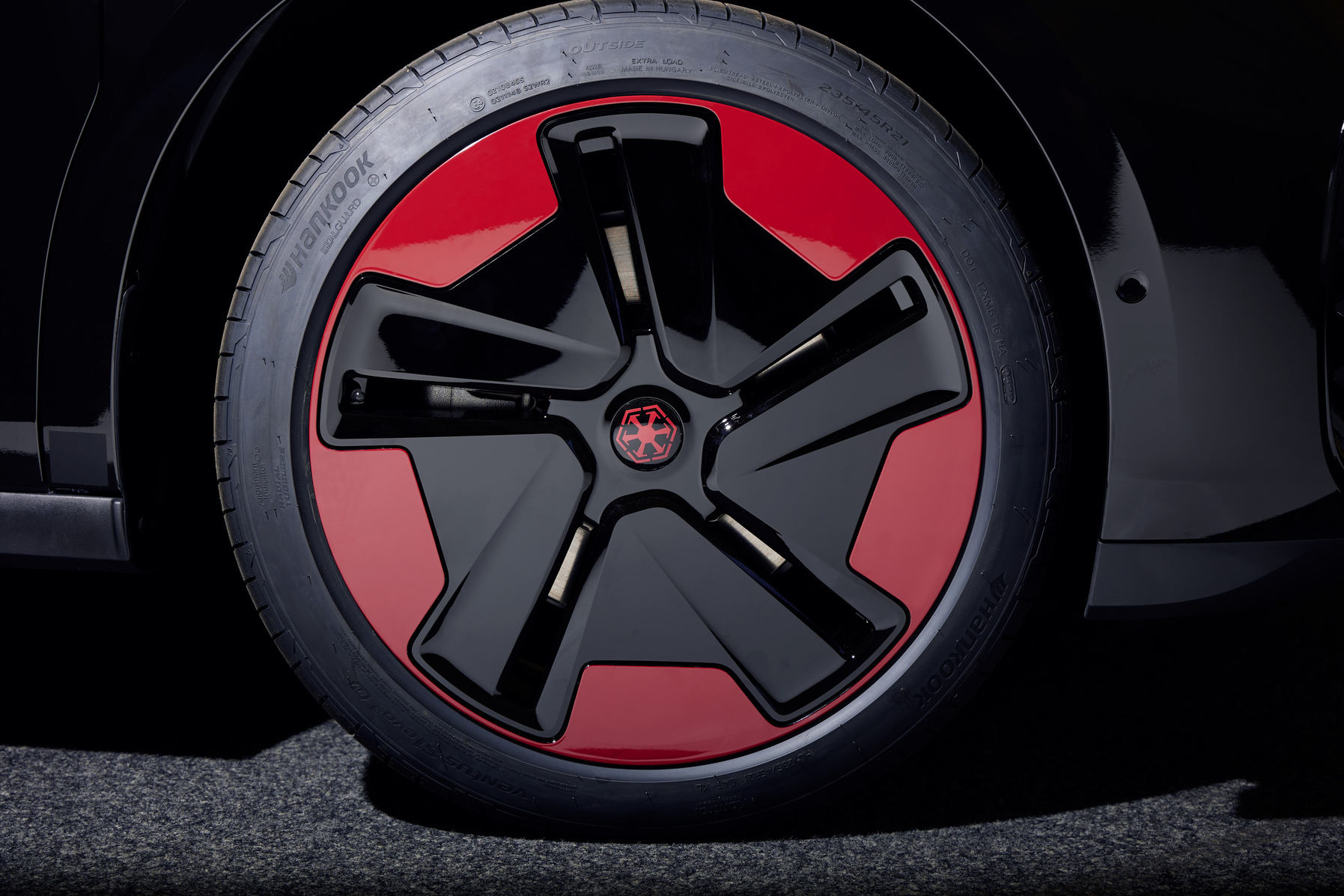 Jako základ pro koncepční vůz ID. Buzz „Dark Side Edition“ posloužil model ID. Buzz Cargo2. Stranu temna ztělesňují pochmurné odstíny černé a červené. Na spodní části vozidla je leskle černá fólie, zatímco horní část modelu ID. Buzz je matně černá. Boční linie, světlomety, světelné lišty a plochy oken jsou výrazně červené, inspirované světelným mečem Dartha Vadera. Kontrast červené a černé umocňuje červené osvětlení spodní části vozu. Kryty nábojů speciálně tvarovaných 21“ kol nesou loga Impéria, která se nacházejí také na karoserii elektromobilu ID. Buzz.