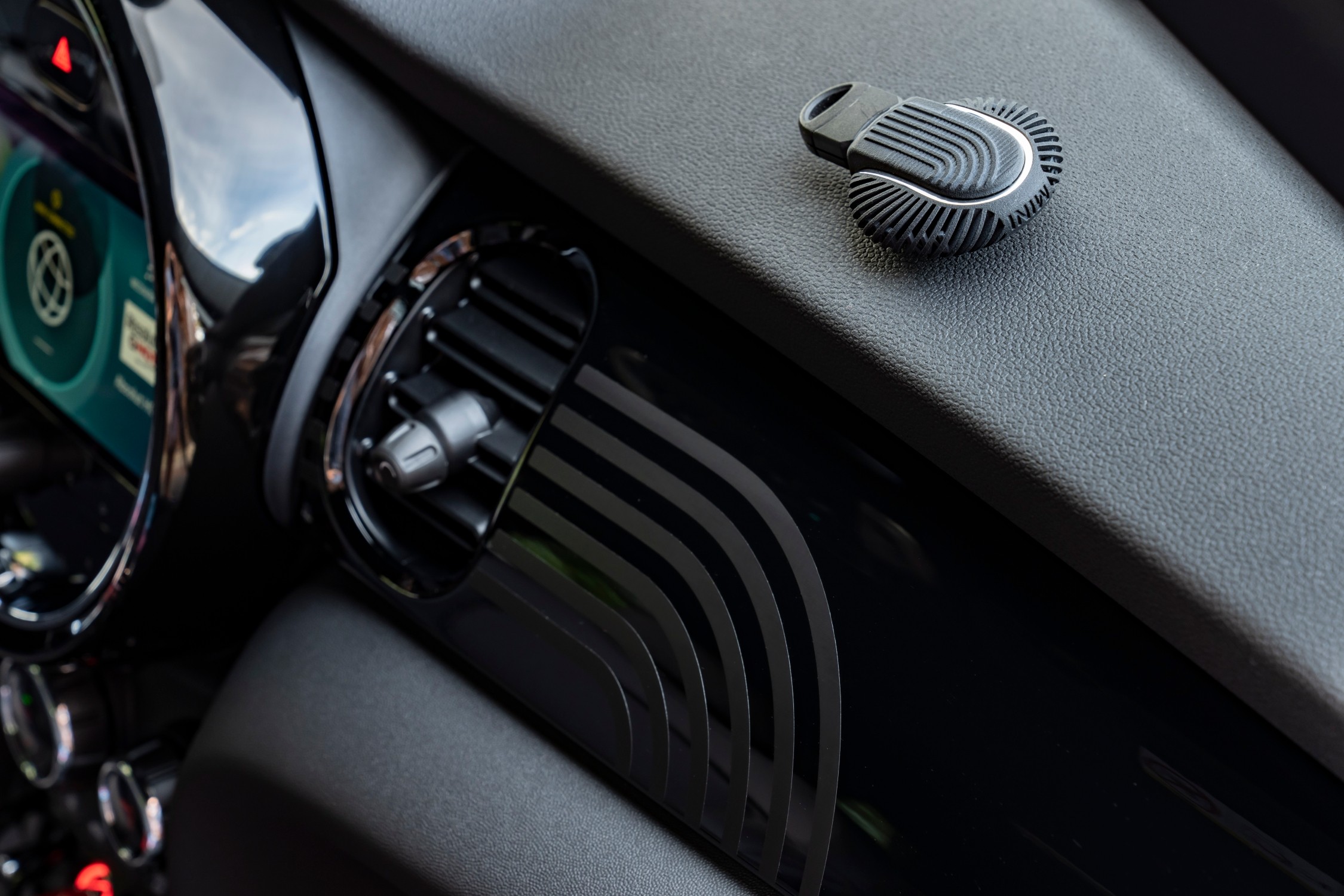 Nápis Multitone, který edici propůjčil název, spolu s duhou v přátelských doplňkových barvách je charakteristický pro design krytů prahů a v podobě loga se objevuje na podlahových kobercích řidiče a spolujezdce. Abstraktní duha se táhne přes palubní desku a zdobí sluneční clony. Multifunkční sportovní kožený volant se znakem této edice ve spodní části jeho svislého ramena je radost držet v ruce, stejně jako osobitou klíčenku edice MINI Multitone.