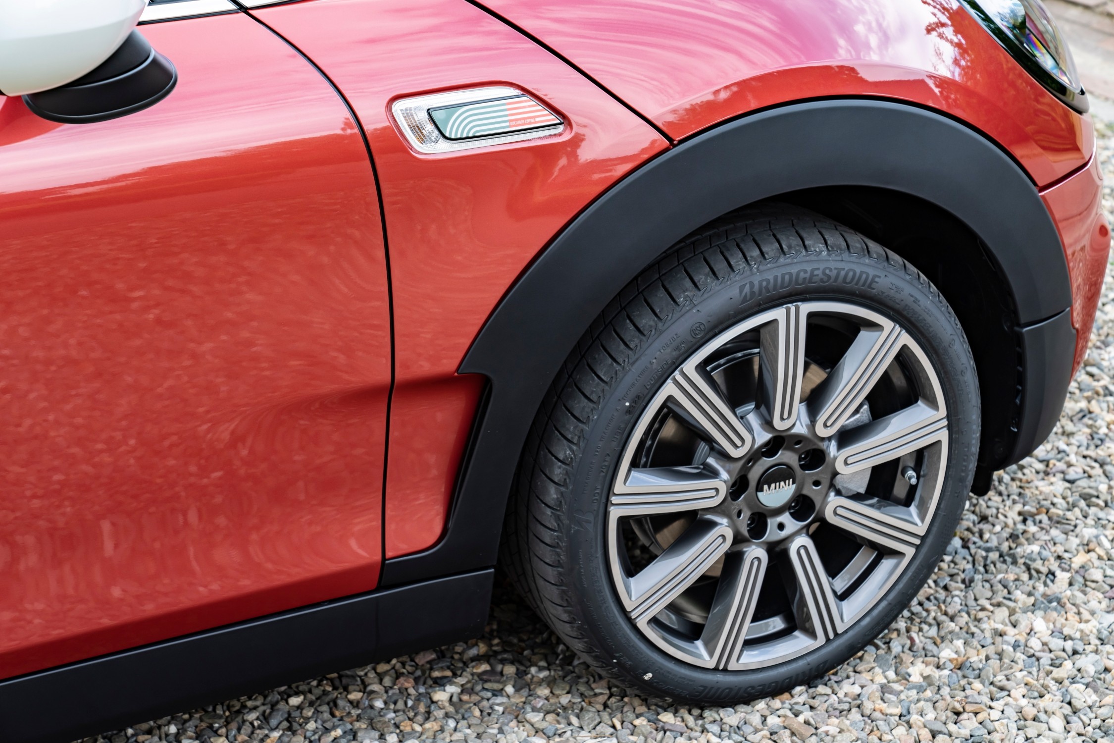 Hlavním designovým prvkem edice MINI Multitone jsou ikonické boční ozdoby a plakety na B-sloupku. Specifické jsou také kryty středů kol ve dvoubarevném provedení. Pozitivní auru speciální edice dotvářejí v závislosti na modelu dvoubarevná 17palcová kola z lehké slitiny v designu Scissor Spoke nebo dvoubarevná 18palcová kola z lehké slitiny v designu Pulse Spoke 2-Tone, případně Multiray Spoke.